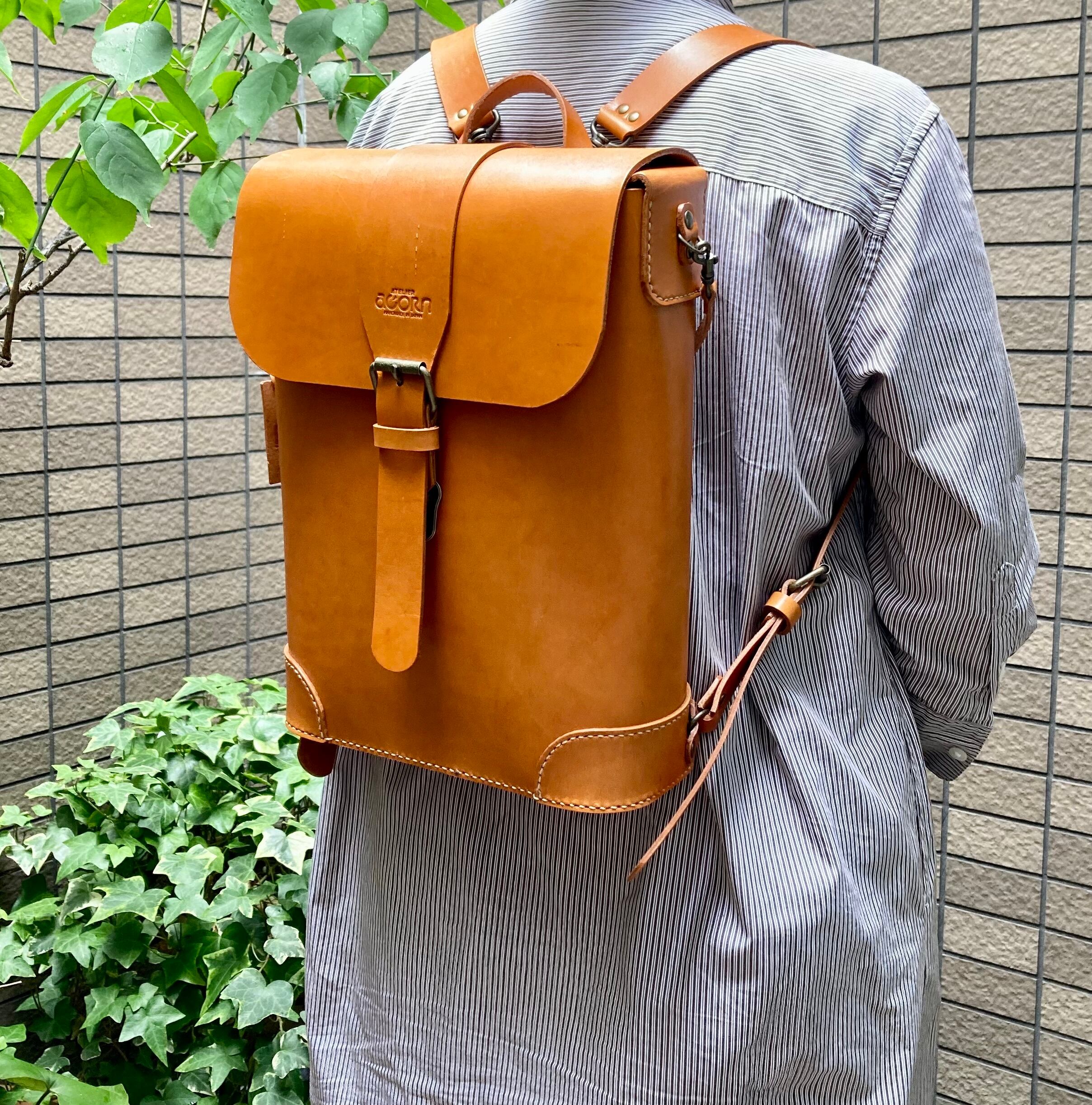 ヌメ革 リュック キャメル 手縫い ☆送料無料