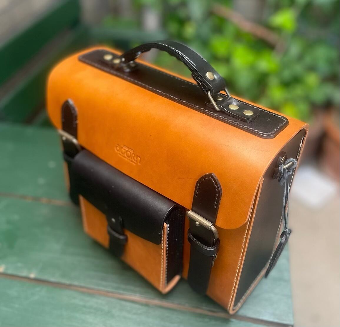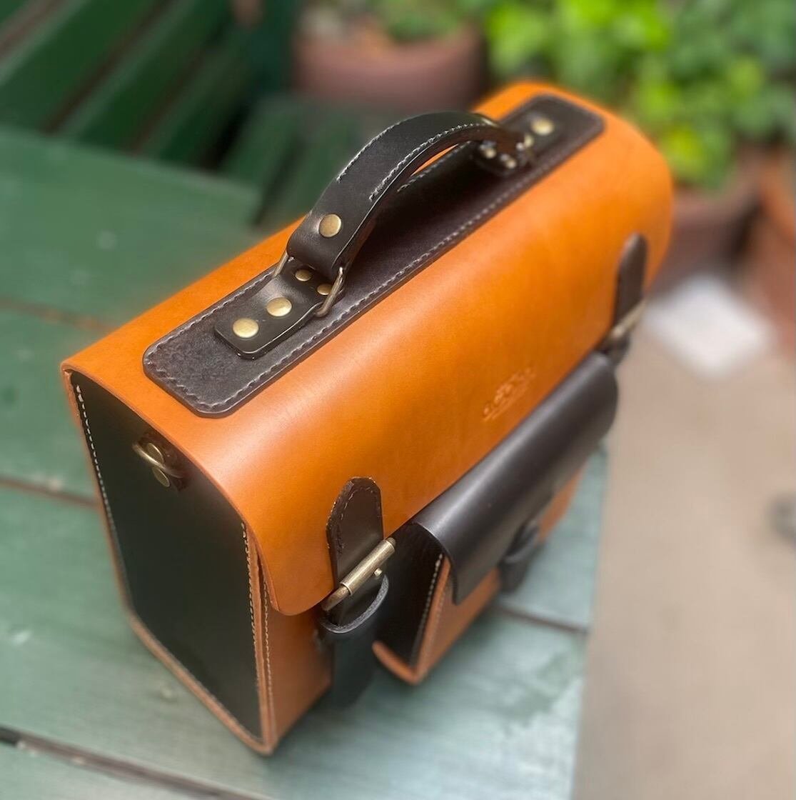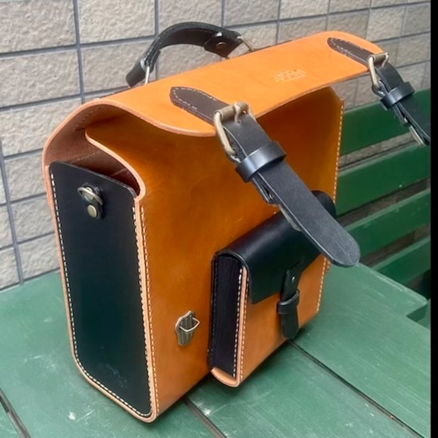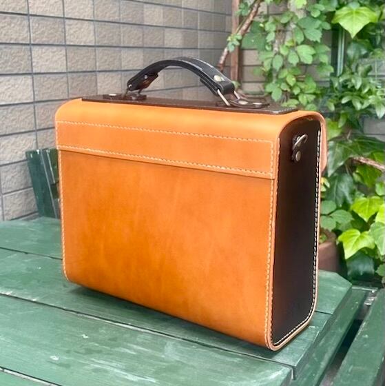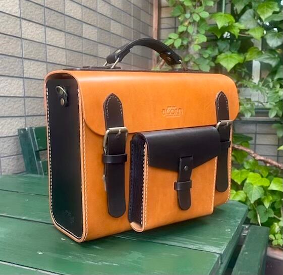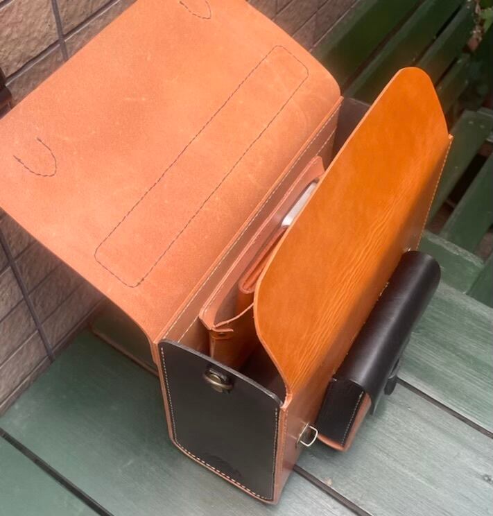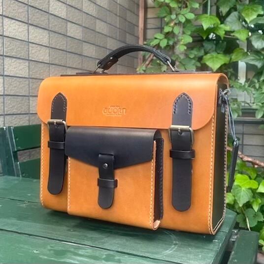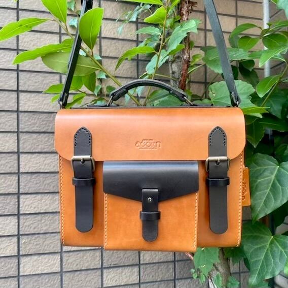 ヌメ革 2wayバッグ ショルダー&ハンドル バイカラー キャメル×クロ 手縫い ☆送料無料