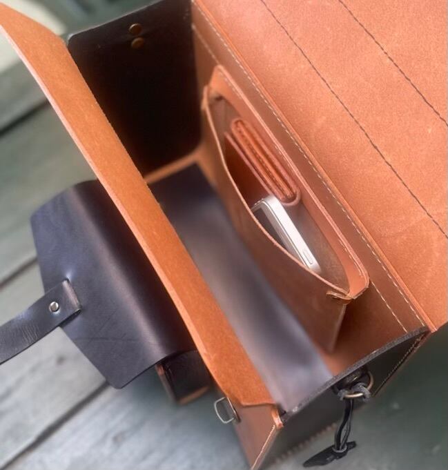 ヌメ革を手縫いで仕立てた2wayバッグです。