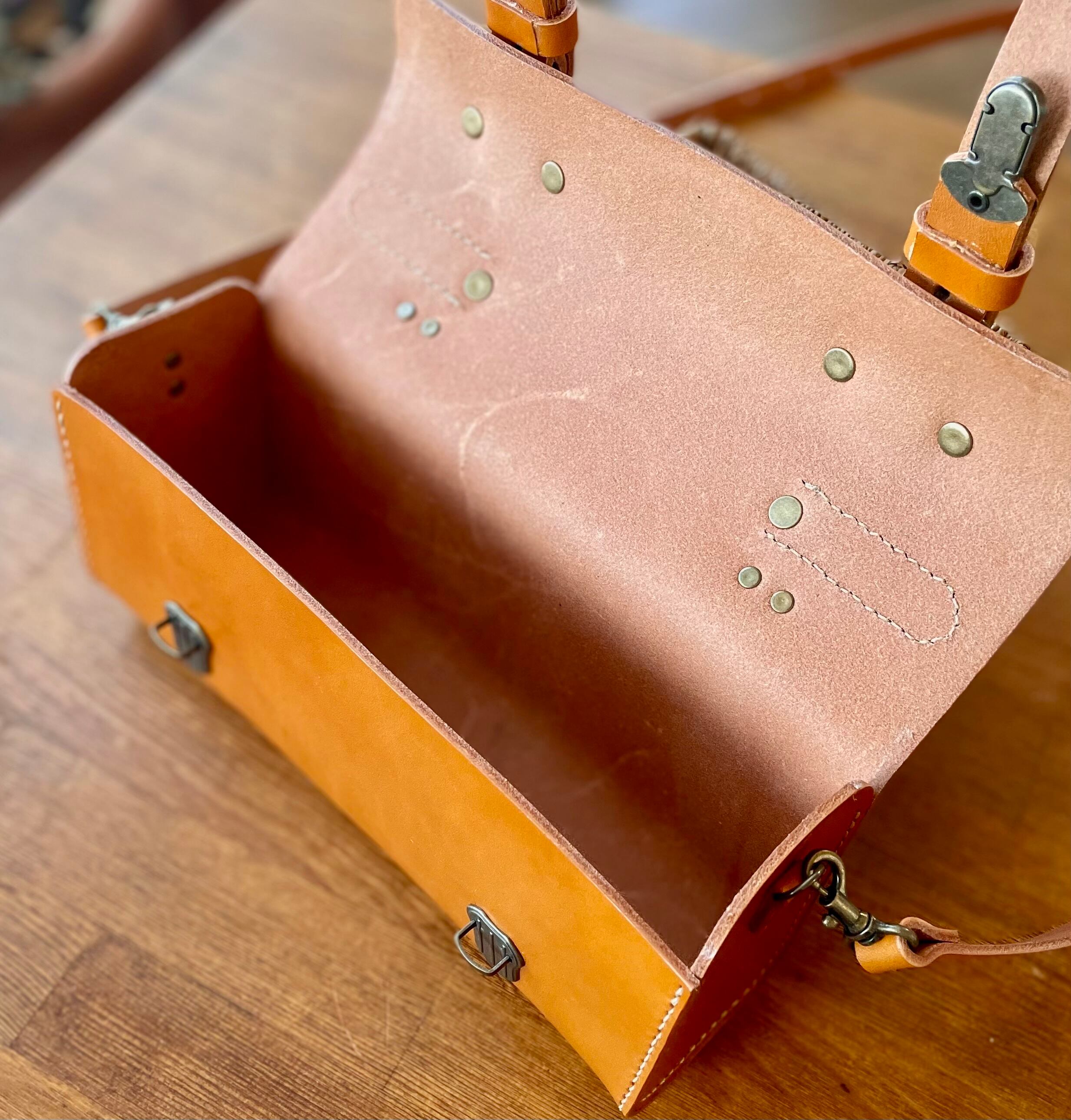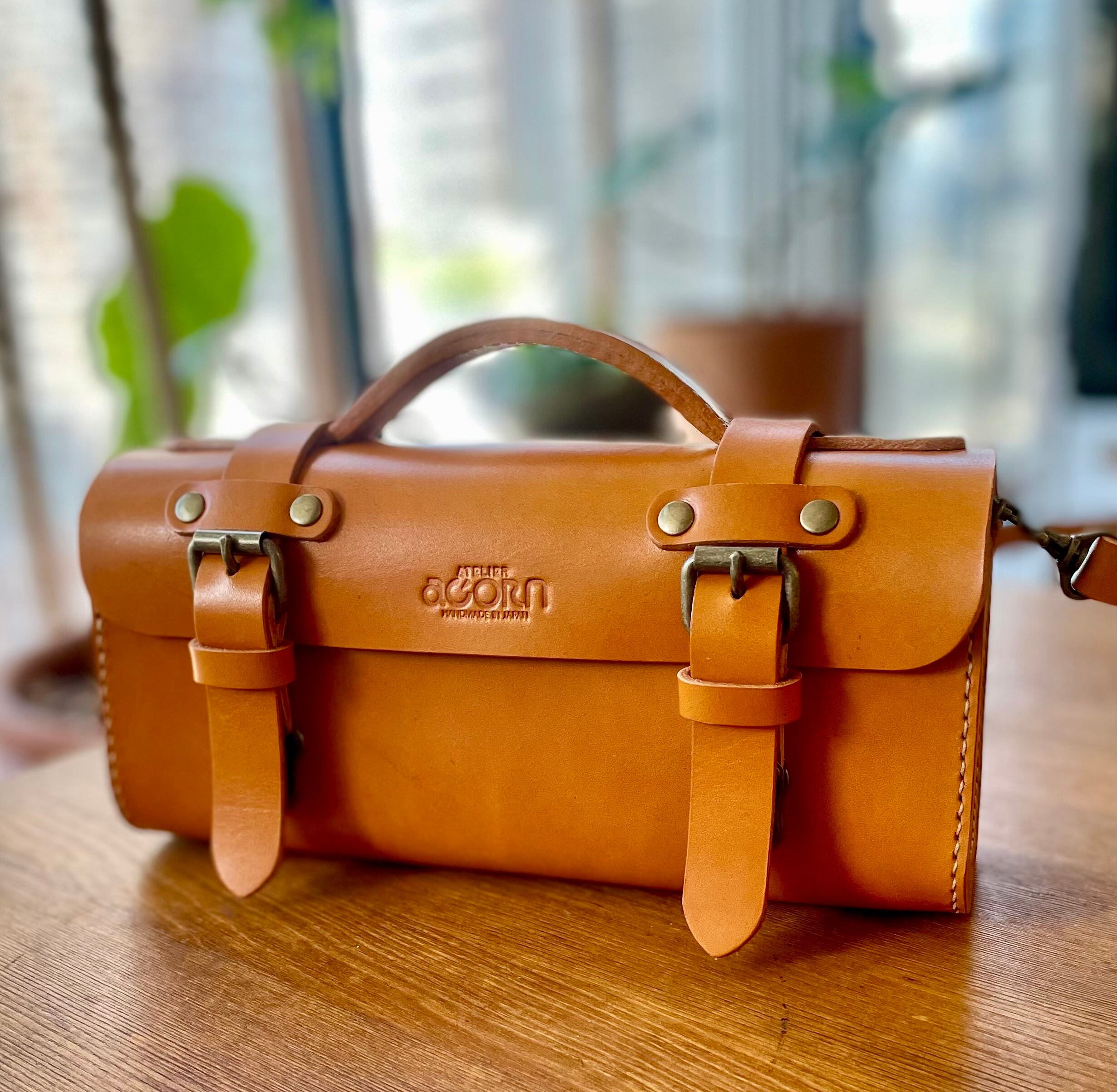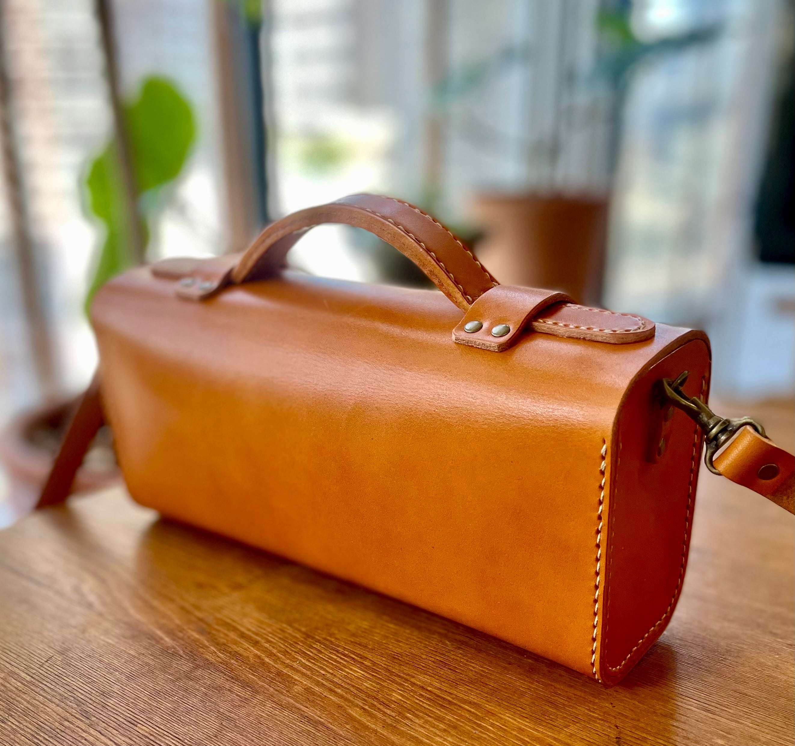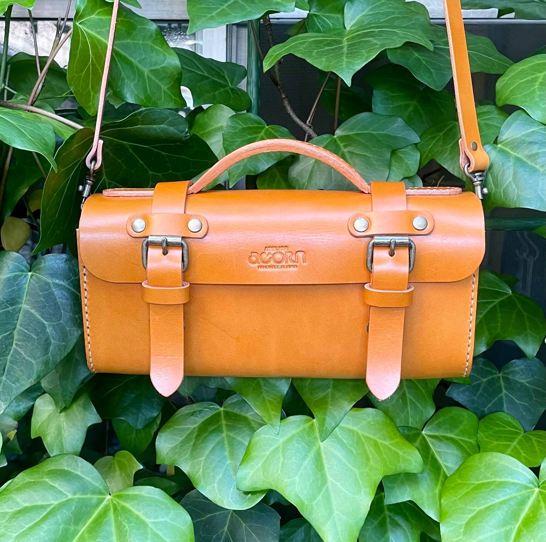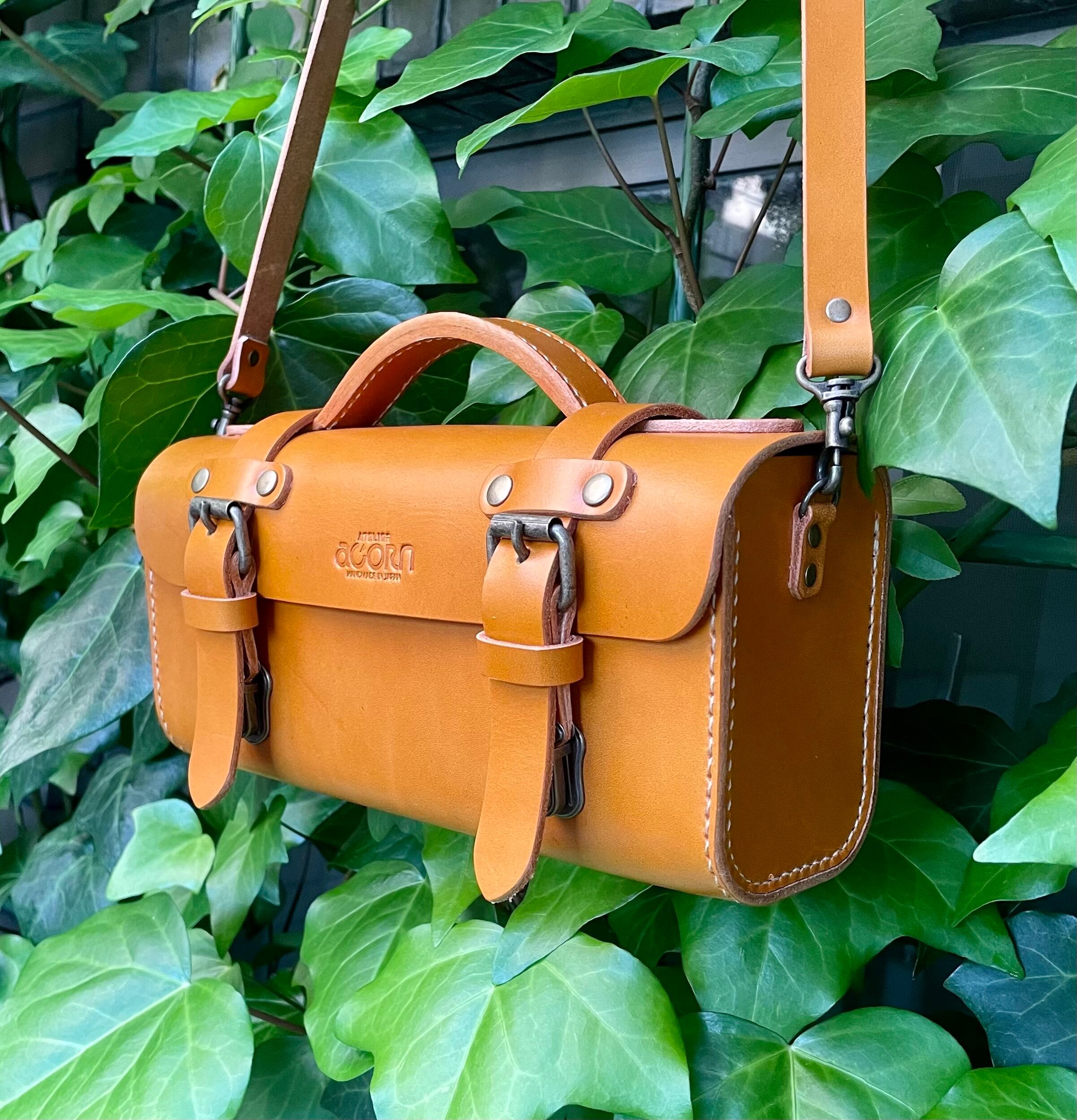 ヌメ革を手縫いで仕立てたショルダーバッグです。
